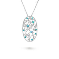オーバルカットのルビーを中心に、様々なカットのダイヤモンドで取り巻いたペンダント。